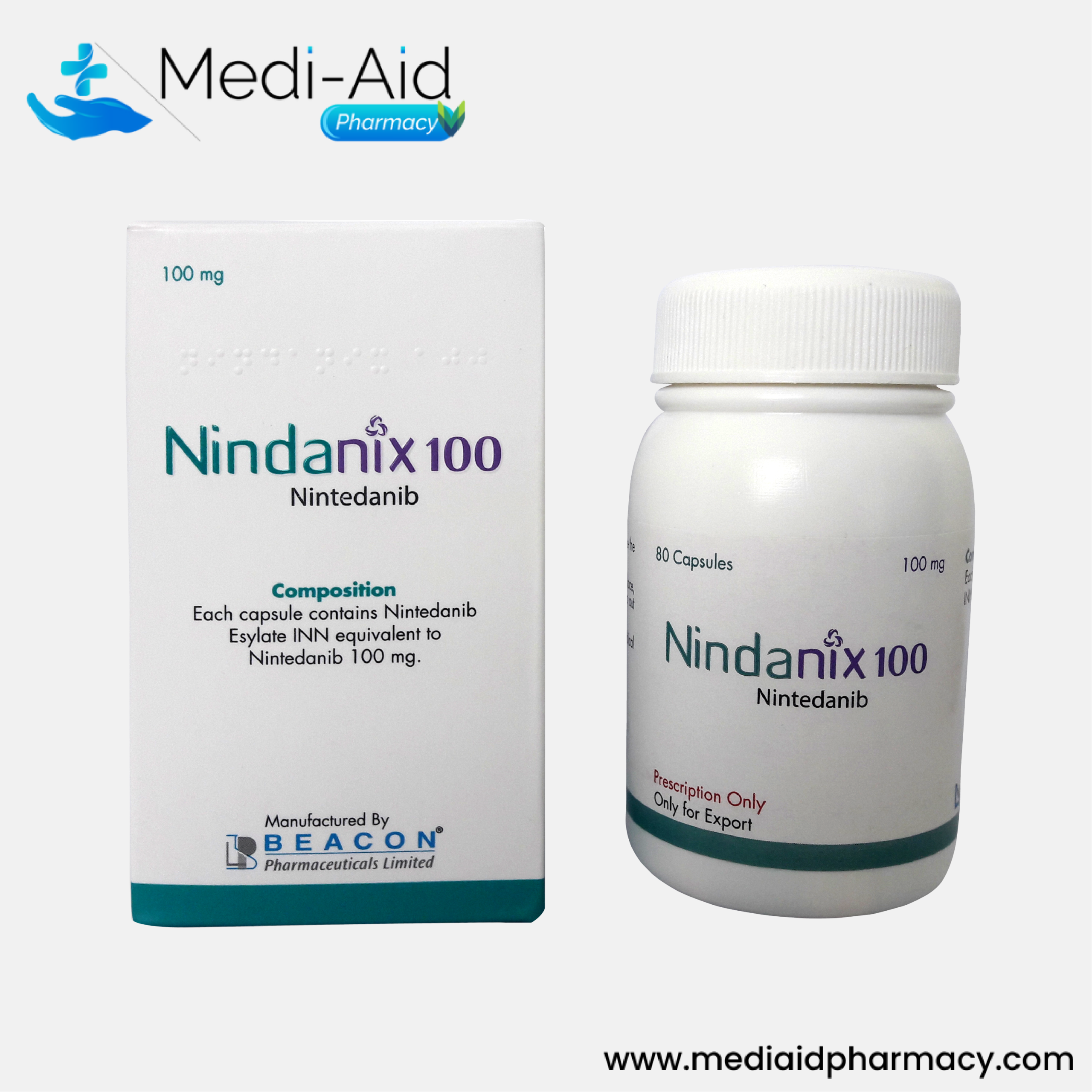 Nindanix (Nintedanib) is a critical therapy for managing progressive fibrosing lung diseases. By slowing the scarring process, it helps preserve lung function and quality of life. Manufactured by Beacon Pharmaceuticals and supplied by Mediaid Pharmacy, it provides a high-quality and accessible treatment option for patients worldwide.