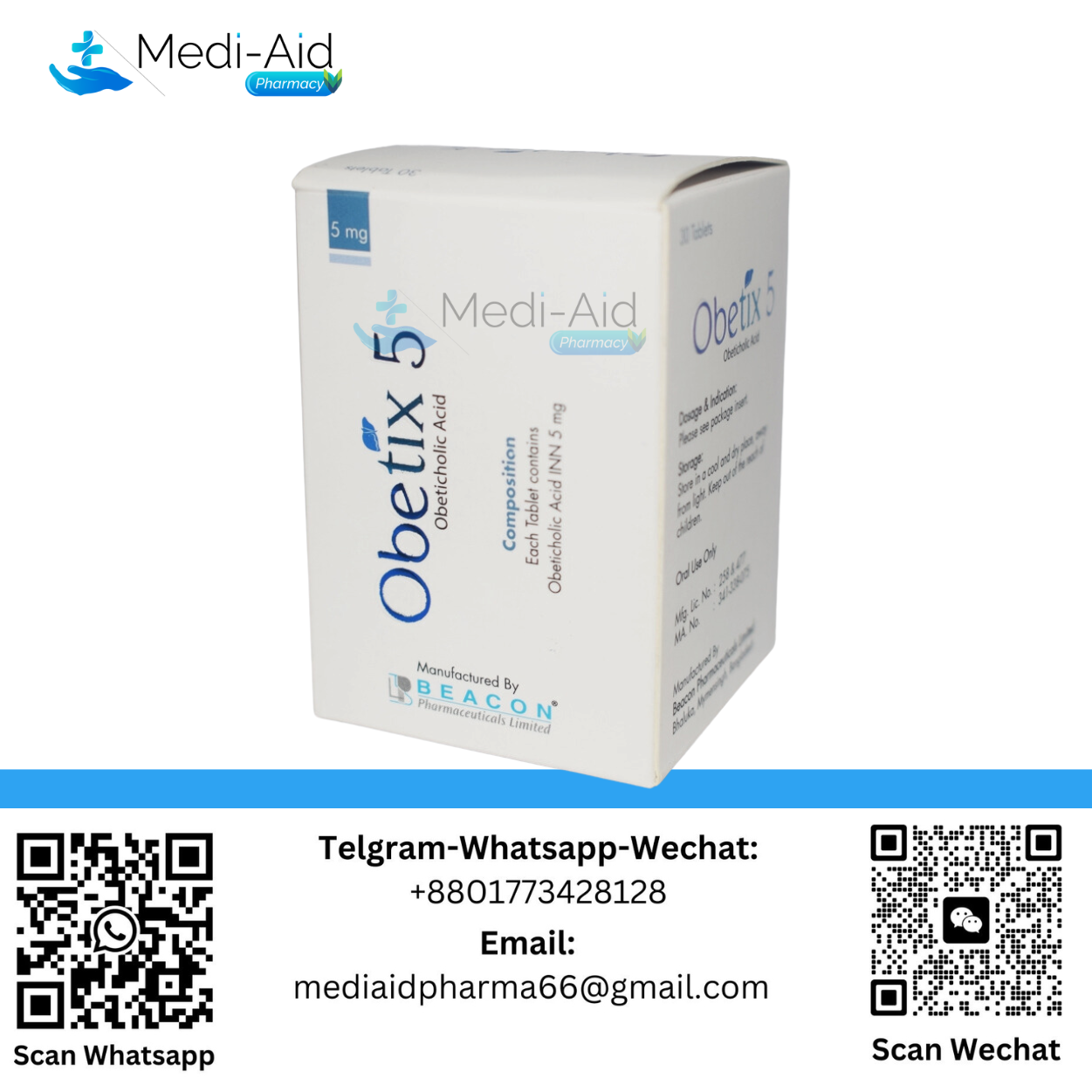 Product Name : obetix(Obeticholic Acid) Generic Name : Obeticholic Acid Formulation : Tablet Available Pack Size : 30’s Pot Available Strengths : 5 mg Registrations : Export Only