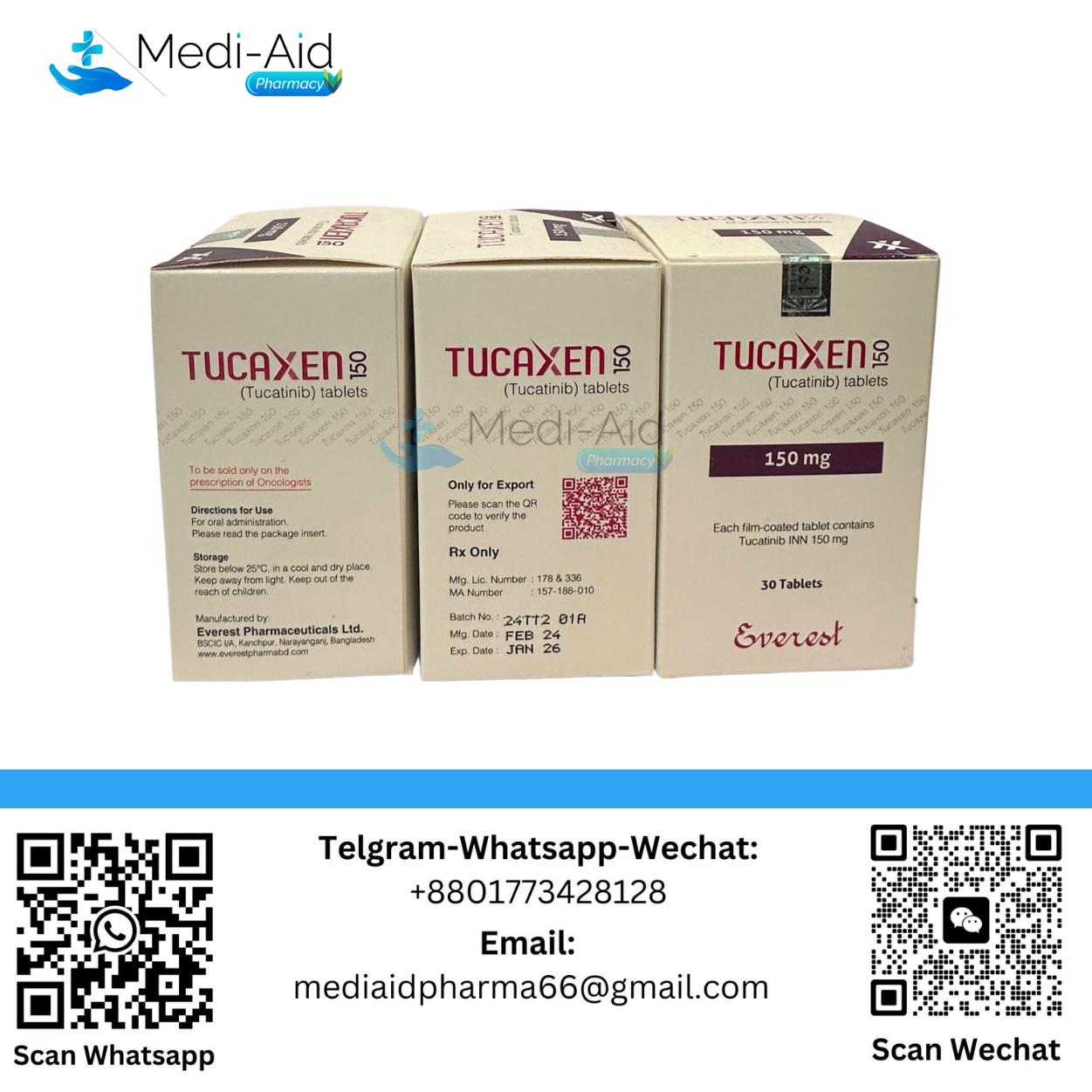 For the latest pricing, bulk orders, or to speak with our pharmacy team about Tucaxen 150 mg (Tucatinib), please contact us. We are available 24/7 to support your healthcare needs.